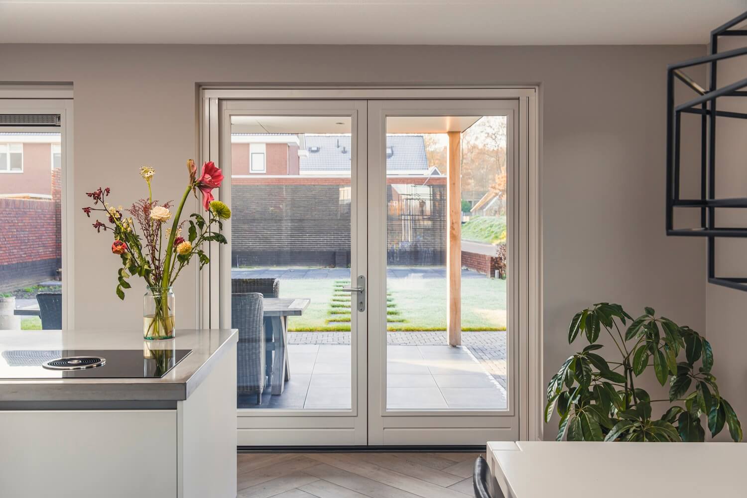 De houten tuindeuren met het Accoya profiel zijn voorzien van BUVA deurbeslag.