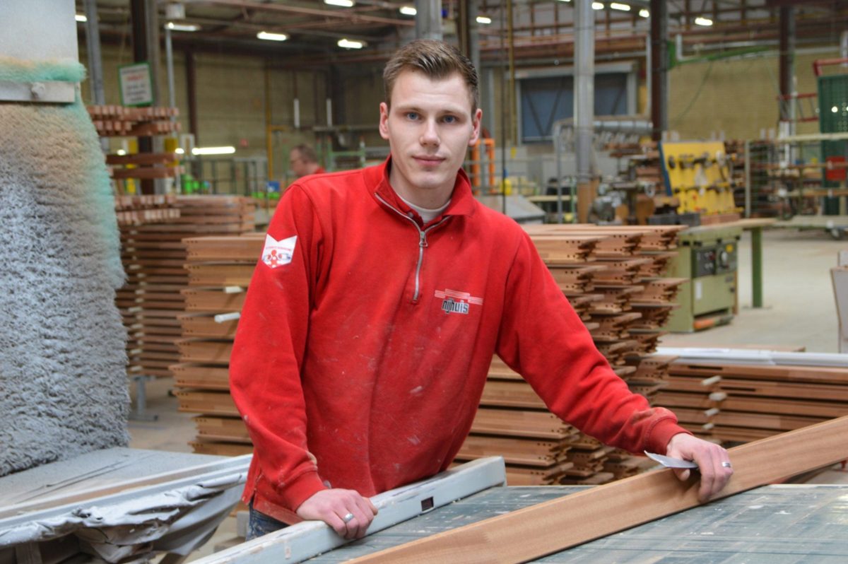 De afdeling machinale staat helemaal aan het begin van het proces van het maken van kozijnen. Ik ben verantwoordelijk voor de productie van de draaiende delen (ramen en deuren). We maken van een ruw product (een blok hout) een volledig geprofileerde raam of een deur, inclusief alle inkrozingen.