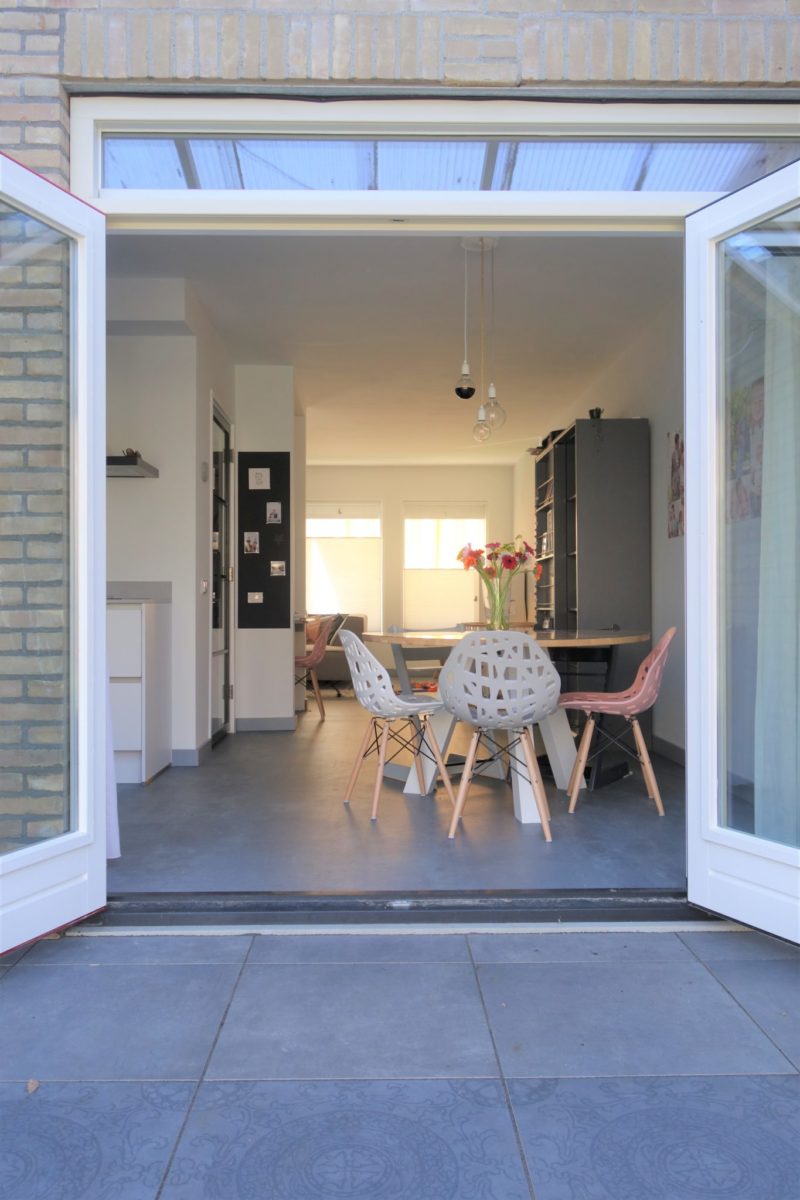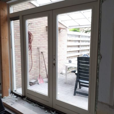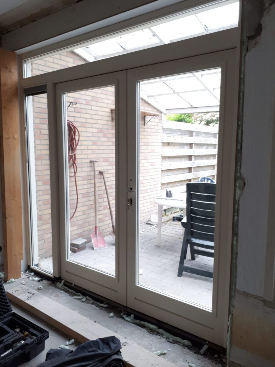 De verbouwing hebben Gerrit en Liset zelf gedaan, Gerrit is namelijk zzp’er in de bouwen een echte handyman zoals Liset omschrijft. “Er zaten twee ramen in die we eerst verwijderd hebben, vervolgens hebben we een opening gemaakt voor de deuren. Na het bestellen van het kozijn werd deze op de gekozen datum geleverd. Vooraf kregen we een bericht met het tijdsbestek, zodat we hier rekening mee konden houden.” Het proces van het kozijnproject verliep goed en de openslaande houten tuindeuren zijn vrij makkelijk geplaatst.