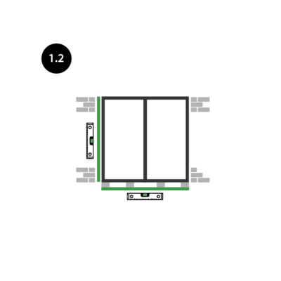 1.2 Plaats het kozijn op de gewenste plek. Zorg ervoor dat je de onderdorpel waterpas stelt en goed ondersteunt.