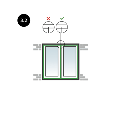 2.2 Stel de stijlen waterpas en loodrecht op de onderdorpel van het kozijn.