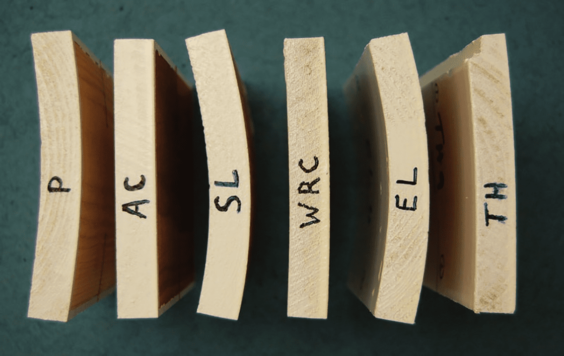 Resultaat Accoya (AC) in vergelijking met andere houtsoorten.