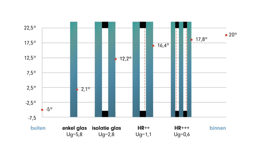 Hoogrendement glas wordt steeds vaker toegepast. Dit glas is goed voor het klimaat en het wooncomfort. Het glas heeft een dun isolerend metaallaagje aan de binnenzijde van een van de glasplaten en de spouw kan eventueel gevuld zijn met edelgas. Bij Toelevering Online leveren wij onze kozijnen standaard met HR-beglazing. Lees hier meer over de verschillende mogelijkheden. Denk bij het samenstellen van je kozijnen ook aan voldoende ventilatie. Voeg bijvoorbeeld ventilatieroosters toe aan jouw maatwerk kozijn als de woning hierom vraagt.