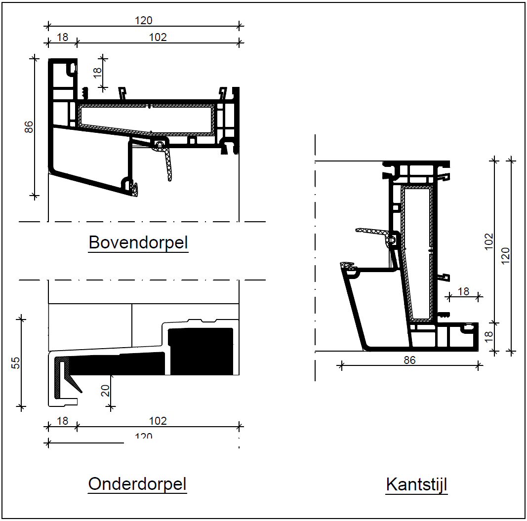 Het K-VISION Trend systeem is een zeer slank verdiept systeem met een inbouwdiepte van 120mm. Dit geeft een strakke en moderne uitstraling.