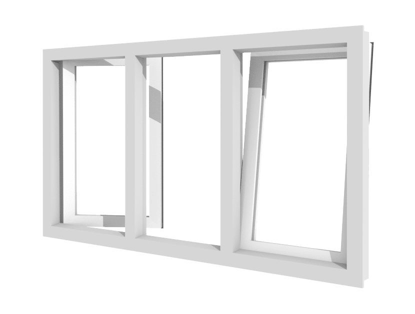 2 Draai-kiepramen en vast glas | 3 vakken | kunststof