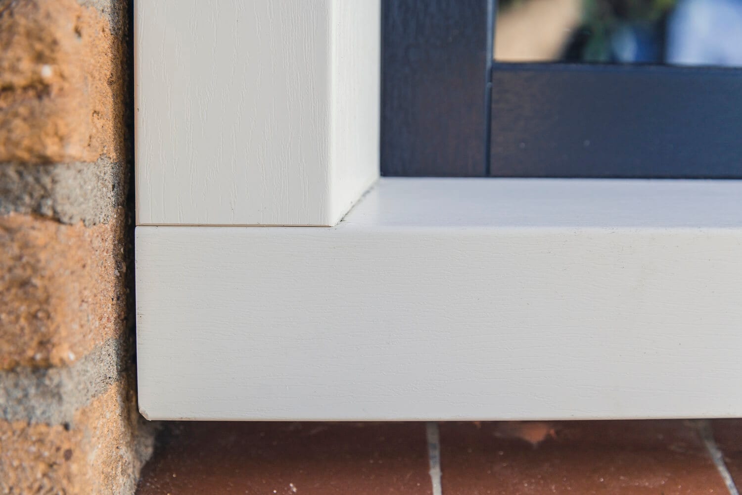 Onze kunststof kozijnen van K-VISION en Gealan kunnen geconfigureerd worden met een standaard verbinding (45° verstek hoekverbinding) of een Houtlookverbinding (HVL).