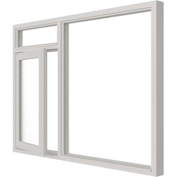 Draairaam met bovenlicht (links) en vast glas 3 vaks