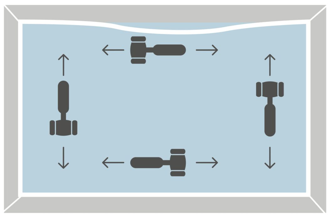 In tegenstelling tot bij het verwijderen van de glaslatten, begin je met het plaatsen van glaslatten bij de kortste zijdes. Plaats de hoeken van de glaslat in de hoeken van het kozijnprofiel en sla de glaslat met een kunststof hamer vast. Doe dit vanuit het midden van de glaslat richting de hoek van het kozijn. Als laatste plaats je de langste glaslatten.