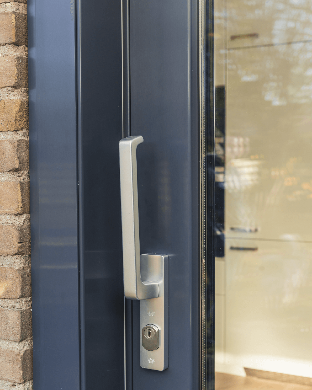 De K-VISION PremiDoor schuifpui wordt standaard voorzien van Siegenia sluitwerk. Voor de grepen passen wij het fabrikaat VBH toe met aan binnenzijde type 2028-6066 en aan buitenzijde een komgreep type 6060.